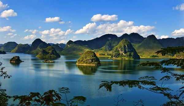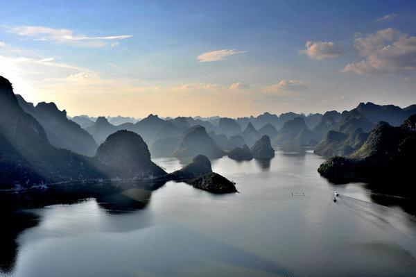 在靖西县城的背部,有一处水源供应地,就是斑斓的渠洋湖啦~湖内岛屿无数,喀斯特峰从林立,那叫一个美啊!